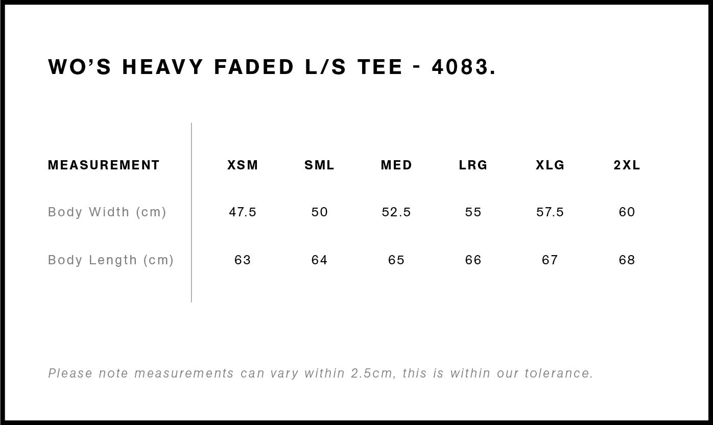 Wide neck ribbing with twin stitching, cuffed sleeves, side seamed, shoulder to shoulder tape, double needle hems, garment dyed, preshrunk to minimise shrinkageTear-out AS Colour label